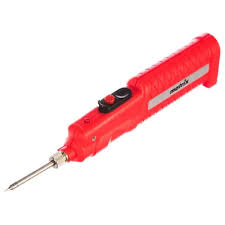 Беспроводной паяльник Matrix 91352 с рабочим напряжением 4,5 В, мощностью 8 Вт, с припоем 10 г, работает от 3 элементов питания AA, рабочая температура составляет 350 °C. Предназначен для пайки микросхем и проводов в условиях отсутствия розетки 220 В. Приобретать припой не нужно — он входит в комплект поставки. Прибор устойчив к повреждениям, т.к. нагревательным элементом в нем является нихромовая спираль. Будет полезен на выездной работе или в путешествии.