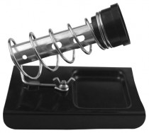 Подставка для паяльника КУРС 60523 применяется для удобного и практичного расположения паяльника при работе и хранении. Изделие выполнено из инструментальной стали и термостойкого пластика, которые обеспечивают устойчивость к высоким температурам и долгий срок службы. Крепкая конструкция подставки проста и надежна в использовании.