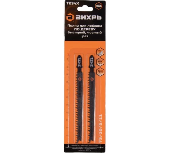 Пилки для лобзика Т234Х по дереву 116х90мм 1х2шт Вихрь 5/11