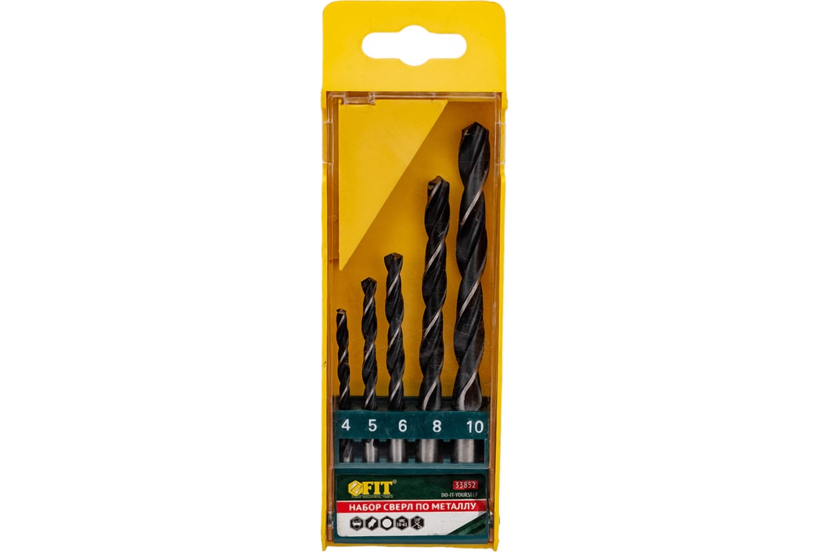 Набор сверел по металлу HSS черненых 4/5/6/8/10мм 1х5шт 33852