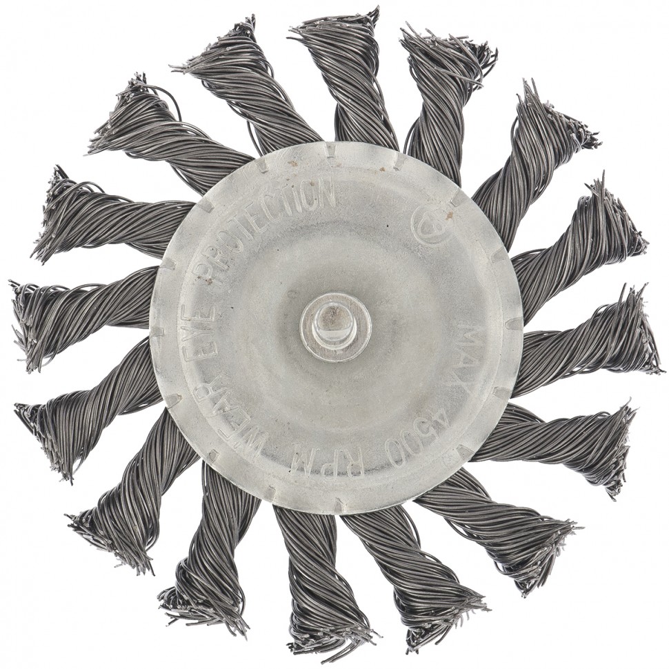 Щетка для дрели 75мм плоская со шпилькой крученая металлическая проволока Matrix 74430