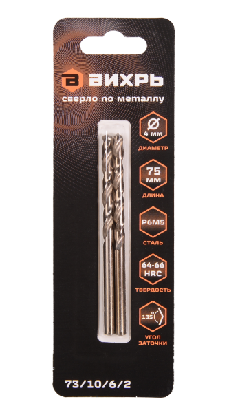 Сверла по металлу ВИХРЬ 4 мм, P6M5 изготовлены методом вышлифовывания профиля, что позволяет инструменту выдерживать значительные нагрузки при сверлении трудно обрабатываемых материалов.
