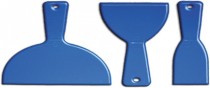 Пластиковые шпатели, имеют небольшие размеры, поэтому они удобны для работы в труднодоступных местах. Применяются для выполнения обработки неровных и шероховатых поверхностей. В ручках предусмотрены отверстия для возможности хранения в подвешенном состоянии. Так как инструмент изготовлен из пластика, он не царапает поверхность.