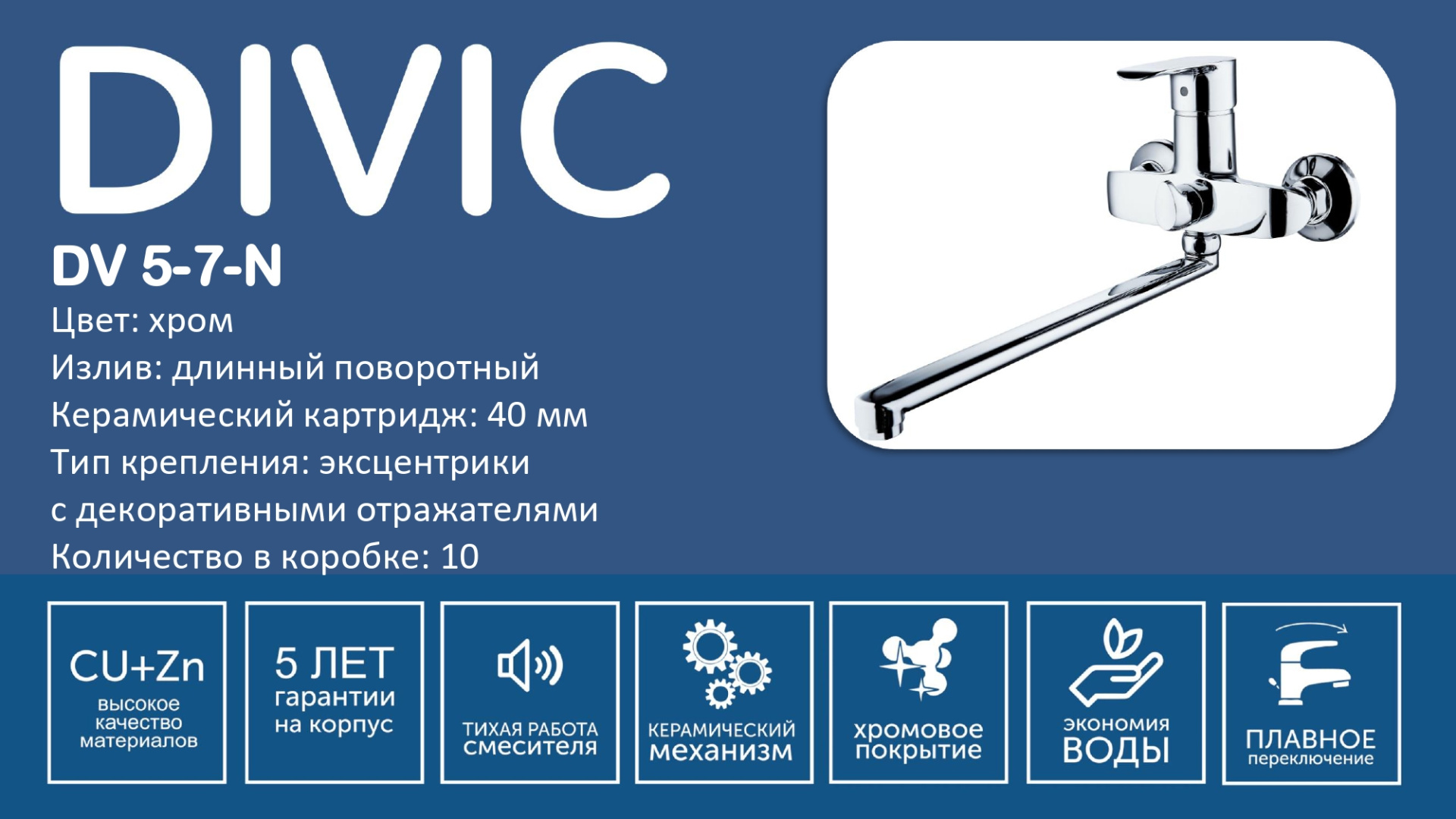 DV 5-7-N Смеситель ВДС длинный излив поворотный DIVIC